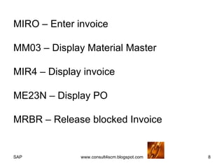 3 way match invoice verification in sap Tcode in SAP | Transaction ...