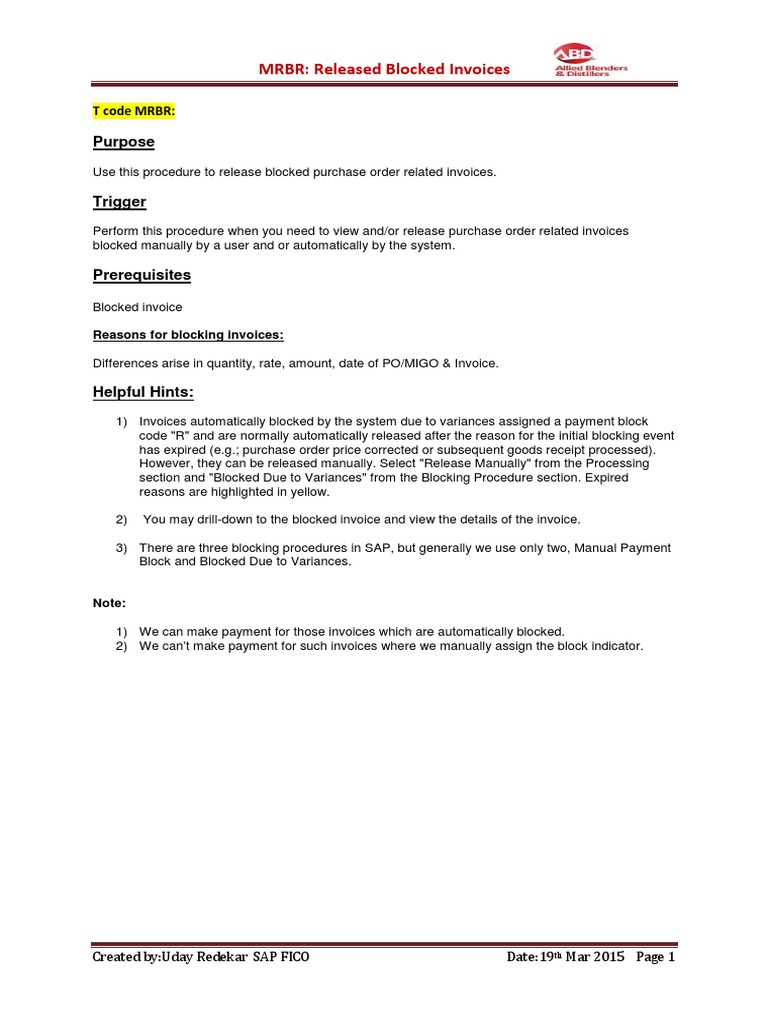 SAP Audit Step - Understanding SAP MRBR Release Blocked Invoices: A ...