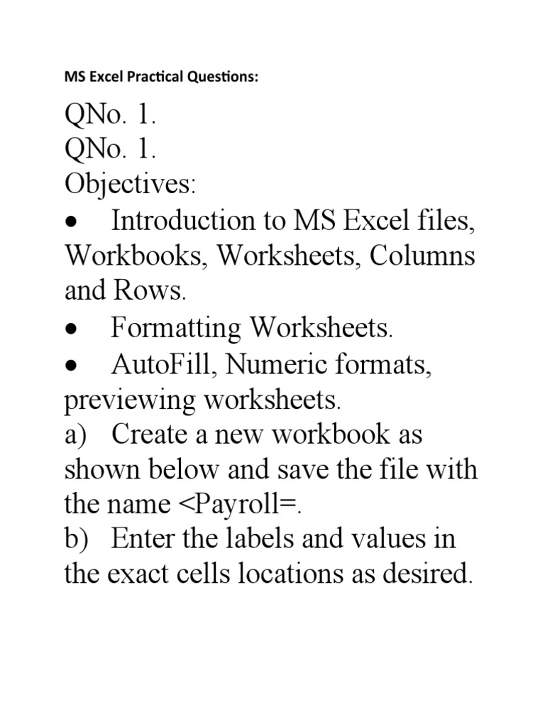 Solved MS Excel Practical Questions: QNo. 1. Objectives: - | Chegg.com