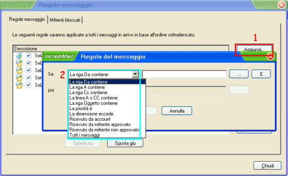 Regole messaggio e mittenti bloccati