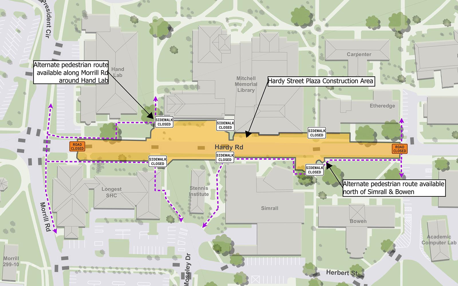 Pedestrian detours adjusted for Hardy Plaza construction | Mississippi ...