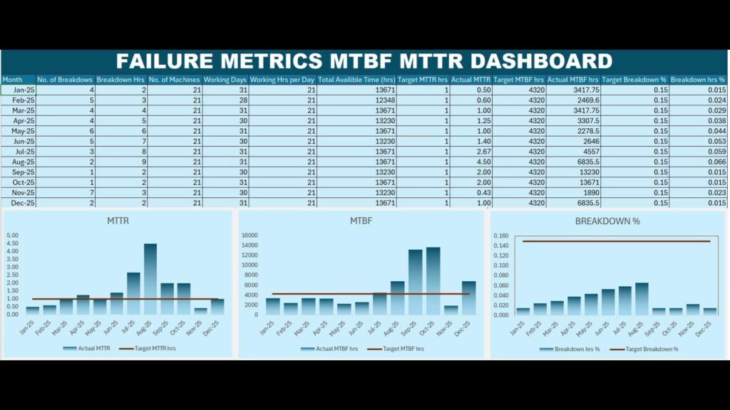 Failure Metrics Dashboard Excel | MTBF & MTTR Dashboard