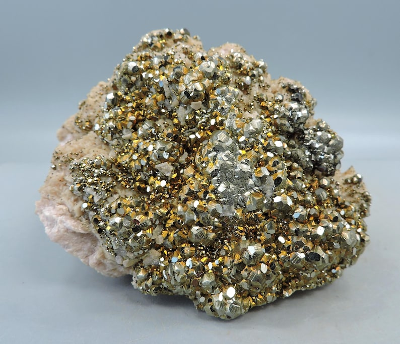 Pyrit auf Rhodochrosit aus dem Kosova - Etsy.de