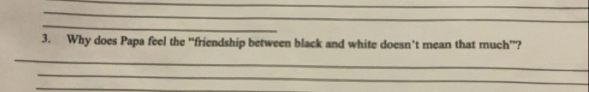 Solved: Why does Papa feel the “friendship between black and white ...
