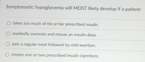 Solved: Symptomatic hypoglycemia will MOST likely develop if a patient ...