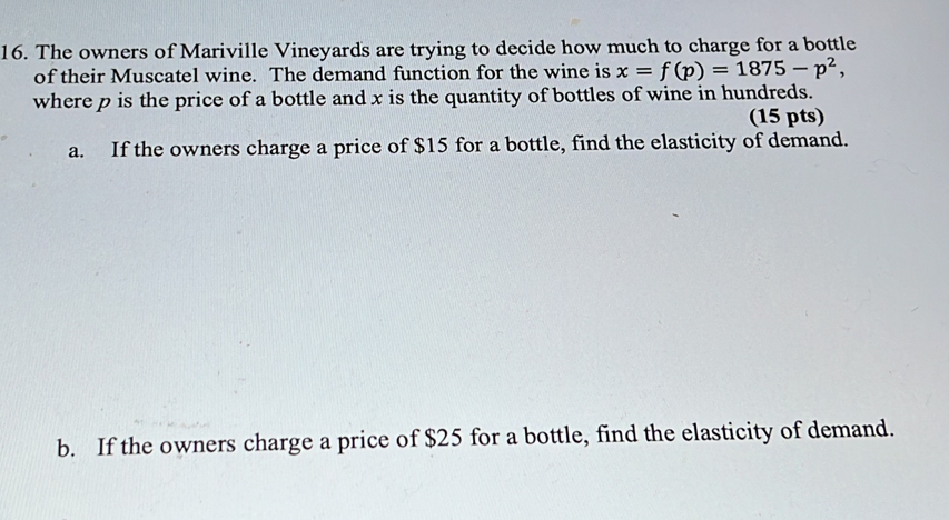 Solved: The owners of Mariville Vineyards are trying to decide how much ...