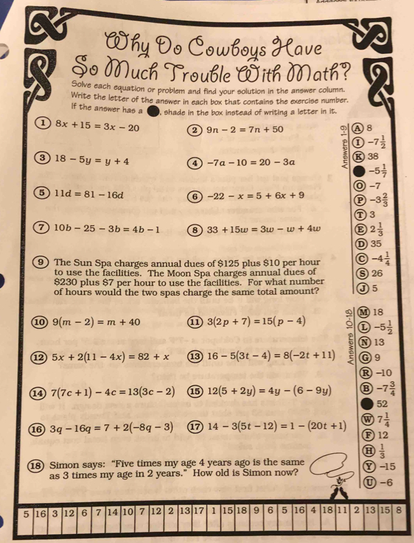 Solved: Why Do Cowboys Have Q So Much Trouble Eith Math? 4 Solve each ...