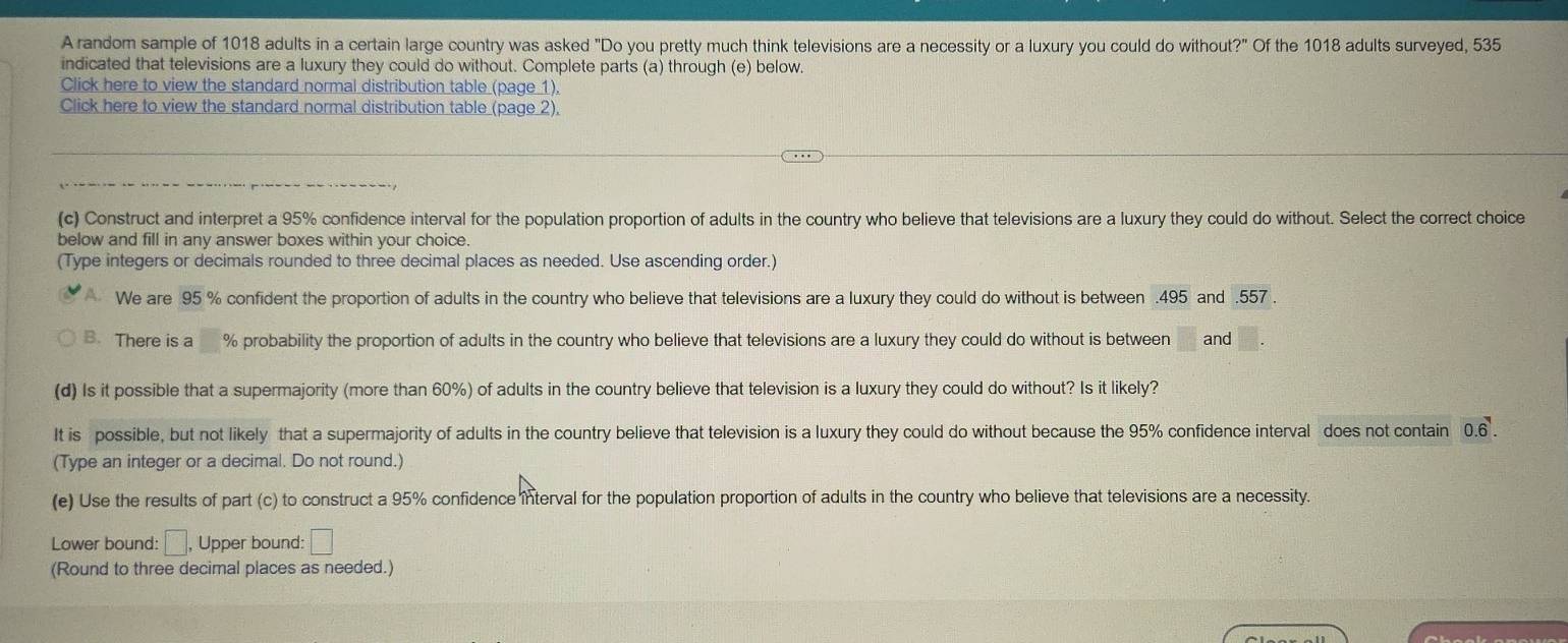 Solved: A random sample of 1018 adults in a certain large country was ...