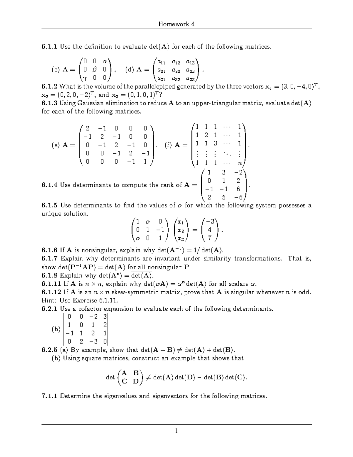 Homework 4: Determinants and Eigenvalues - Studocu