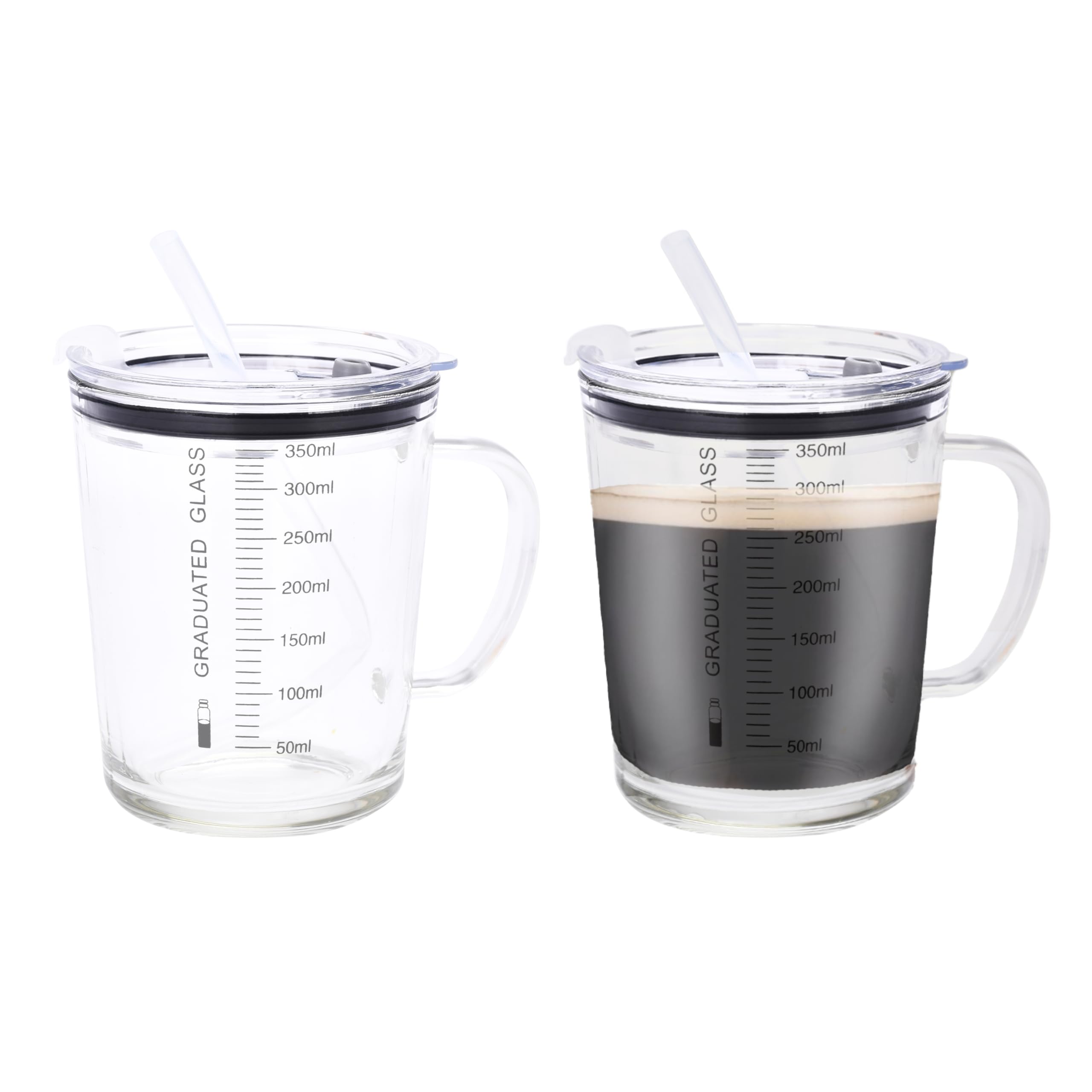 Buy LUXU Glass Coffee Mugs with Measuring Function,Wide Mouth Design ...