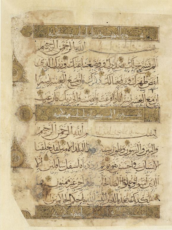 Bonhams : A Qur’an bifolium written in gold and black muhaqqaq script ...
