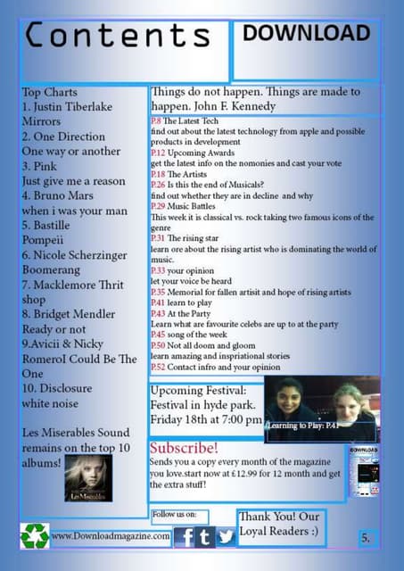Music magazine contents pages | PPTX | Desktop Publishing | Computer ...