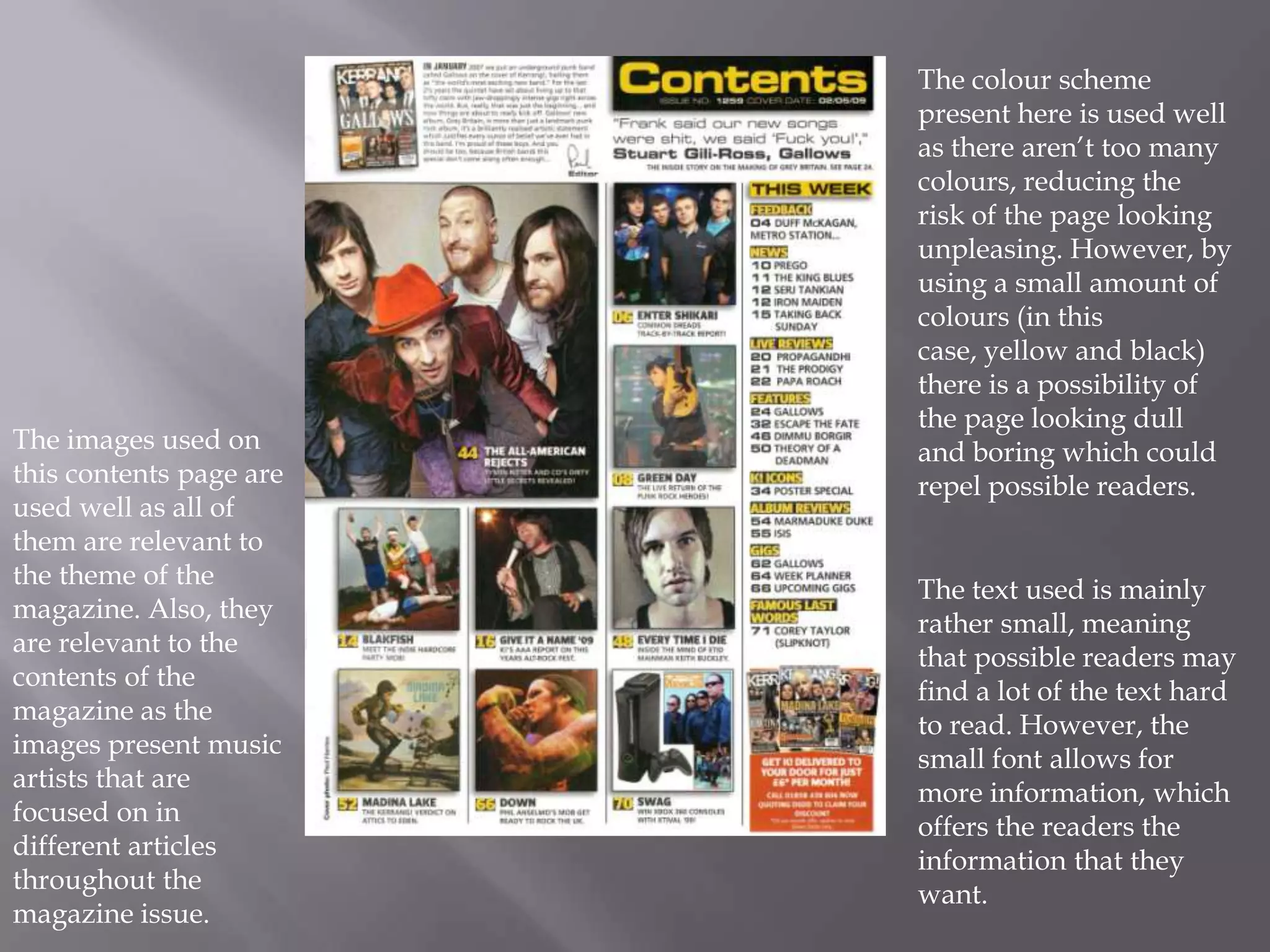 Music Magazine Contents Page Breakdown | PPTX | Desktop Publishing ...