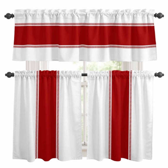3 Pieces Kitchen Curtain Valance and Tiers Set, Red Solid Color Texture ...