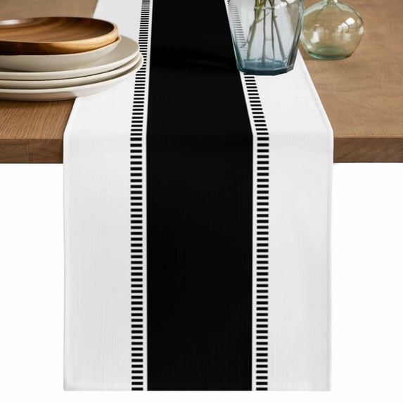 Black Solid Color Texture Table Runner, Simple Black Stripes Washable ...