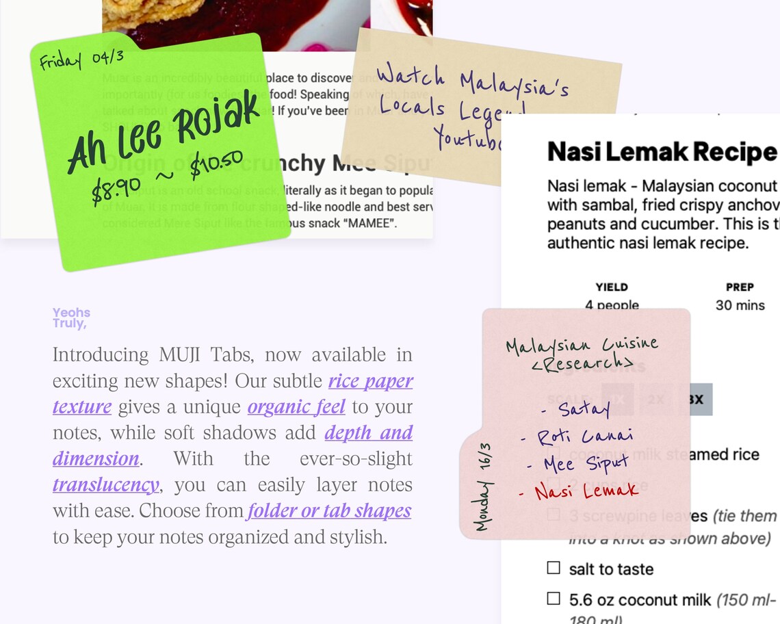 26 MUJI Tab Sticky Note Stickers: Rice Paper Texture (precrop PNG) - Etsy