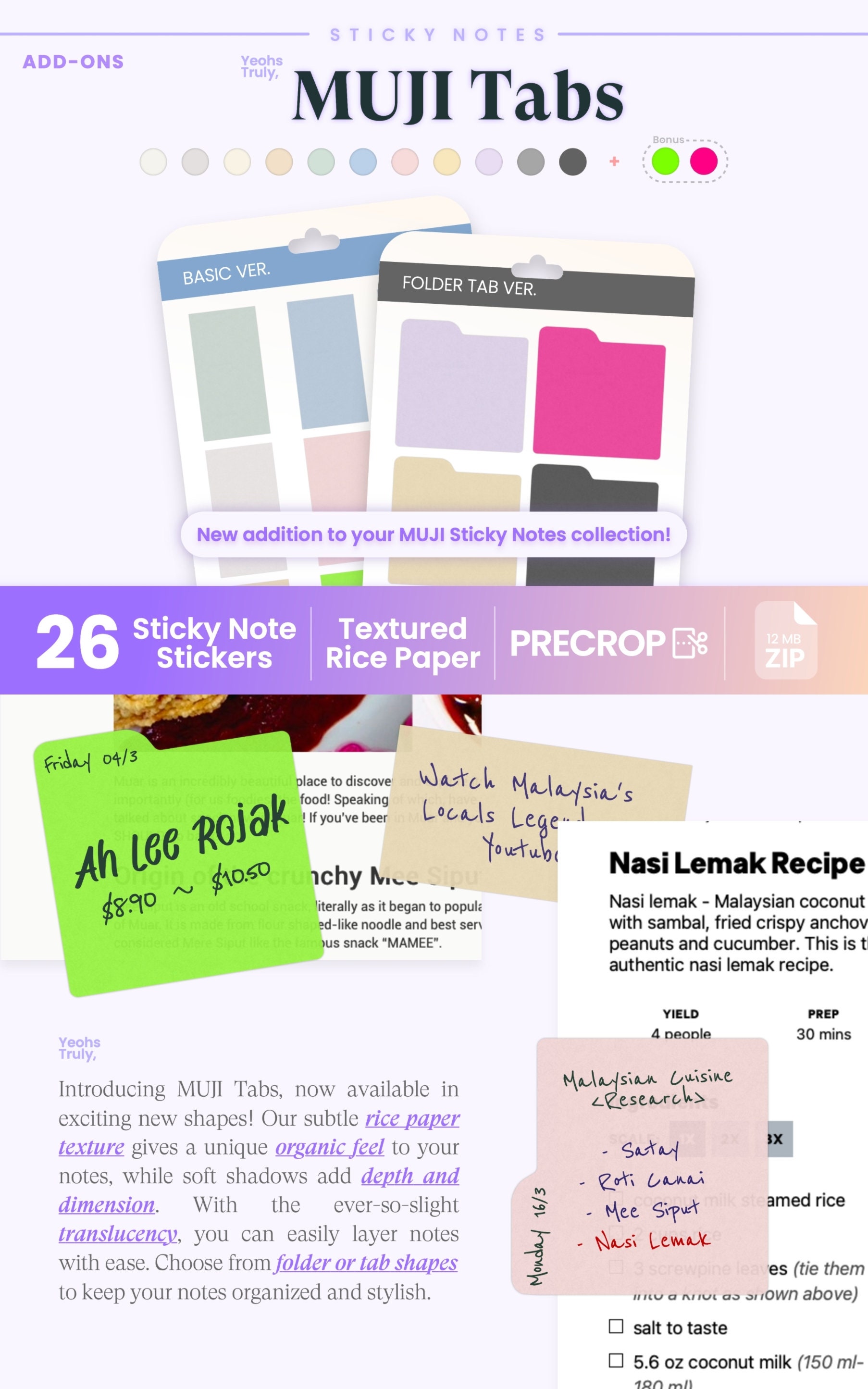 26 MUJI Tab Sticky Note Stickers: Rice Paper Texture (precrop PNG) - Etsy