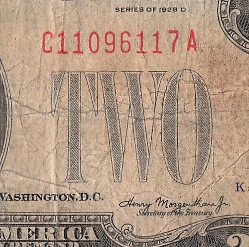 1928 D MULE Two Dollar Red Seal C11096117A United States Note MULE NOTE ...