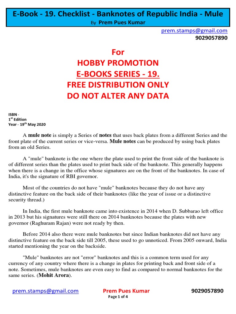 Mule Banknotes of India Checklist | PDF | Banknote | Currency