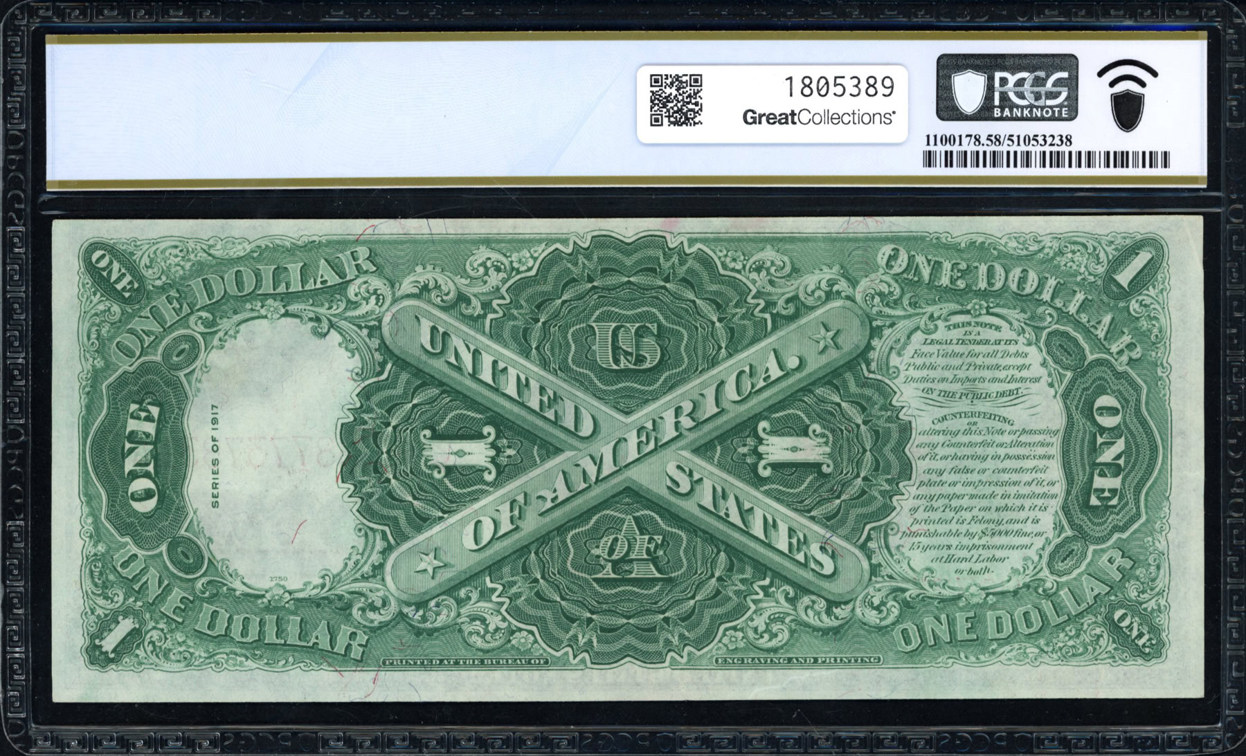 Fr. 38m 1917 $1 Legal Tender Mule Note Seven of a Kind Serial Number ...