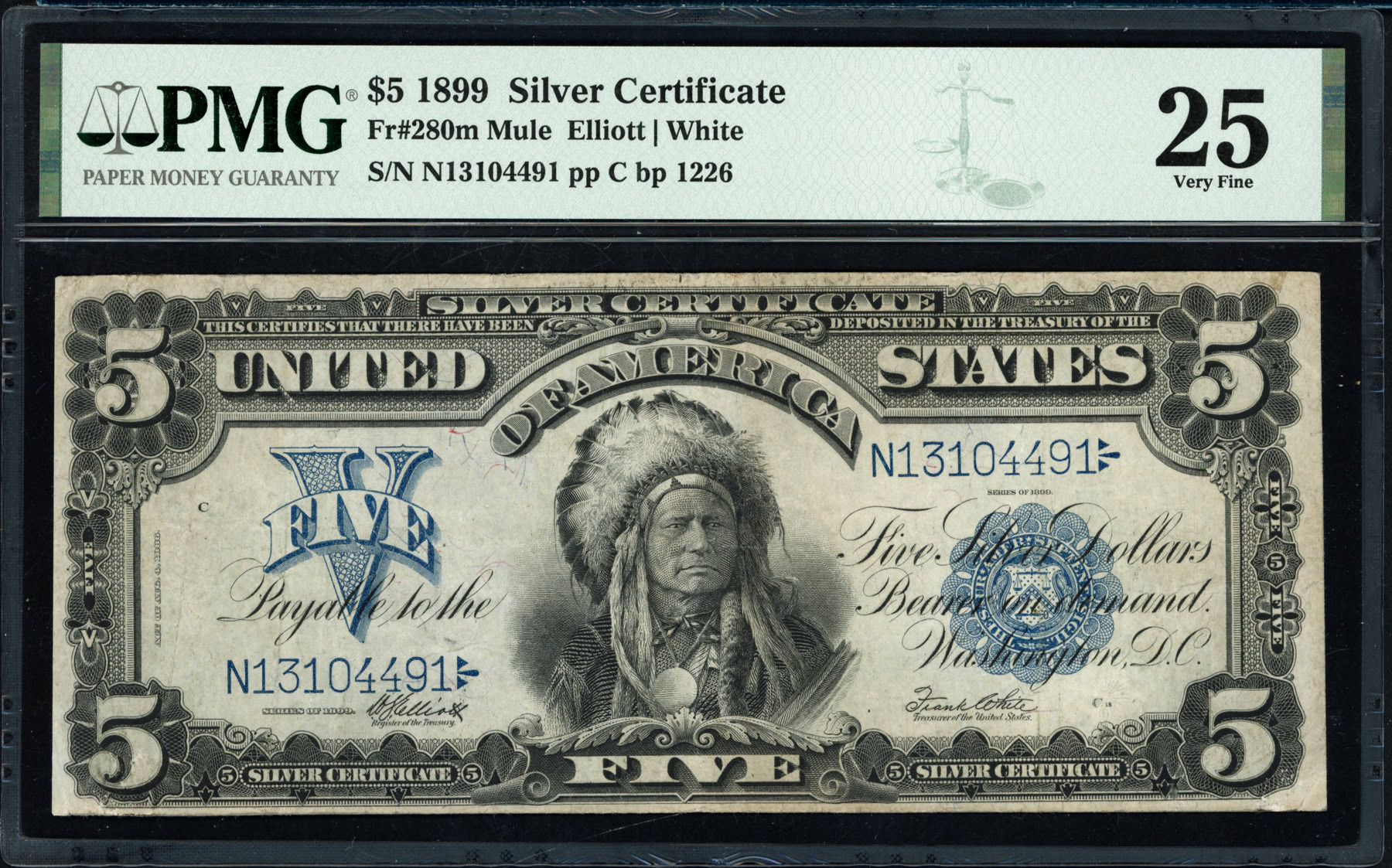 Fr. 280m 1899 $5 Silver Certificate Mule Note Elliott / White PMG Very ...