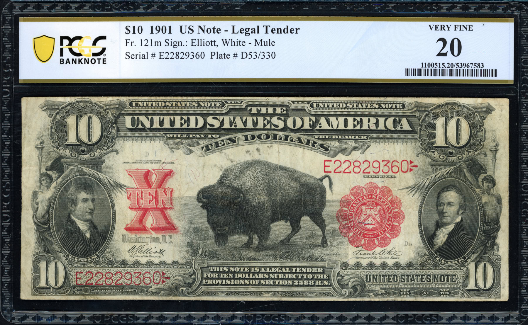 1901 $10 "BISON" LEGAL TENDER MULE NOTE FR122m LEWIS and CLARK TEN ...