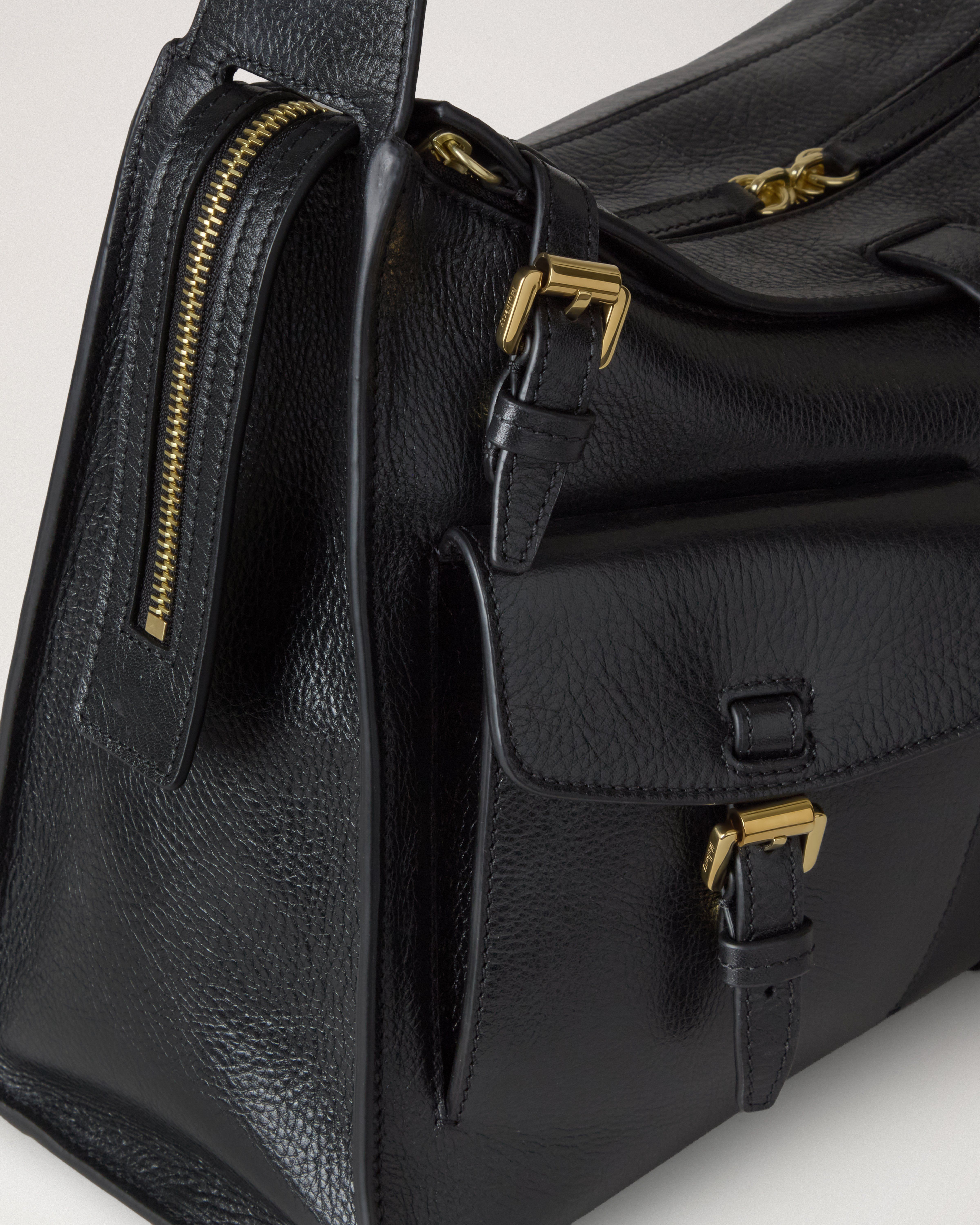 Mulberry Chiltern Buckle Satchel in Black Grained Vegetable Tanned ...
