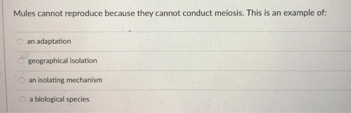 Solved Mules are a hybrid that cannot reproduce. What type | Chegg.com