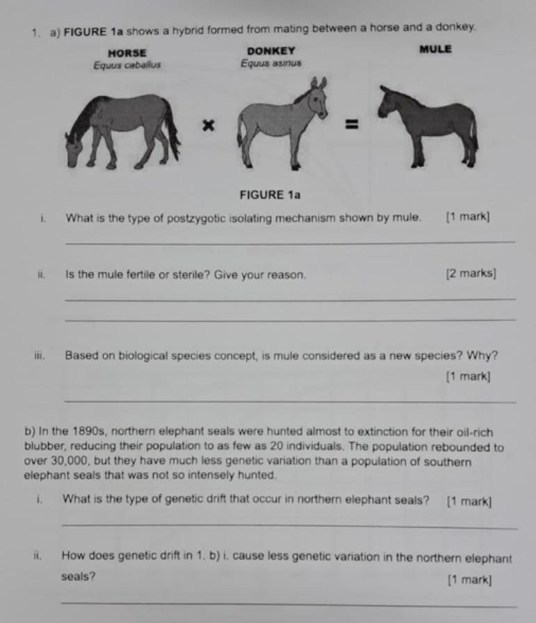 BIO 1301 Unit 8 Final exam.docx - Question 1: Mules cannot reproduce ...