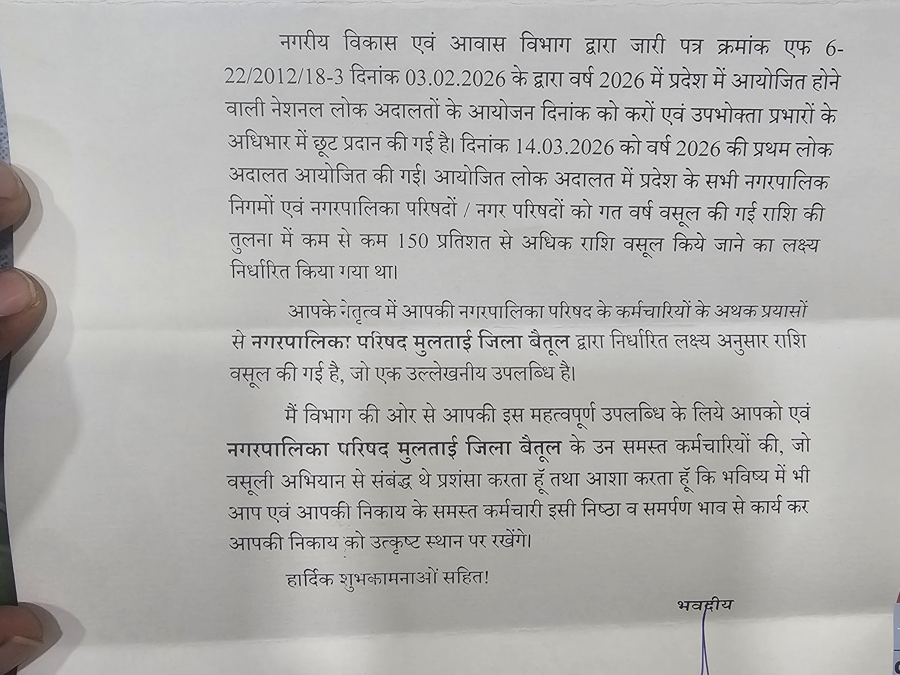 Multai Nagarpalika Excellence in Lok Adalat Revenue Collection