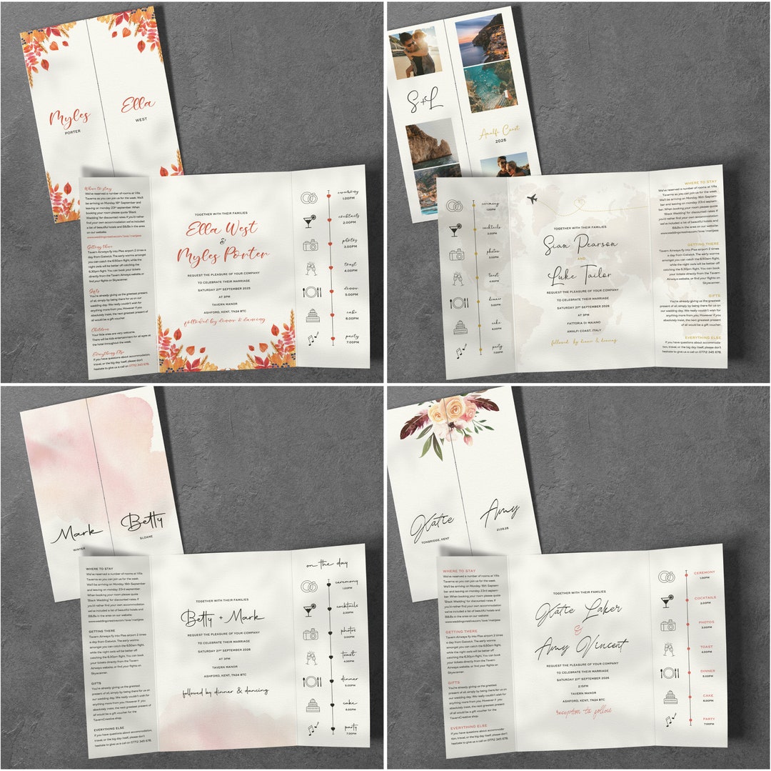Printed all-in-one wedding multi-fold invitation self mailer seal and ...