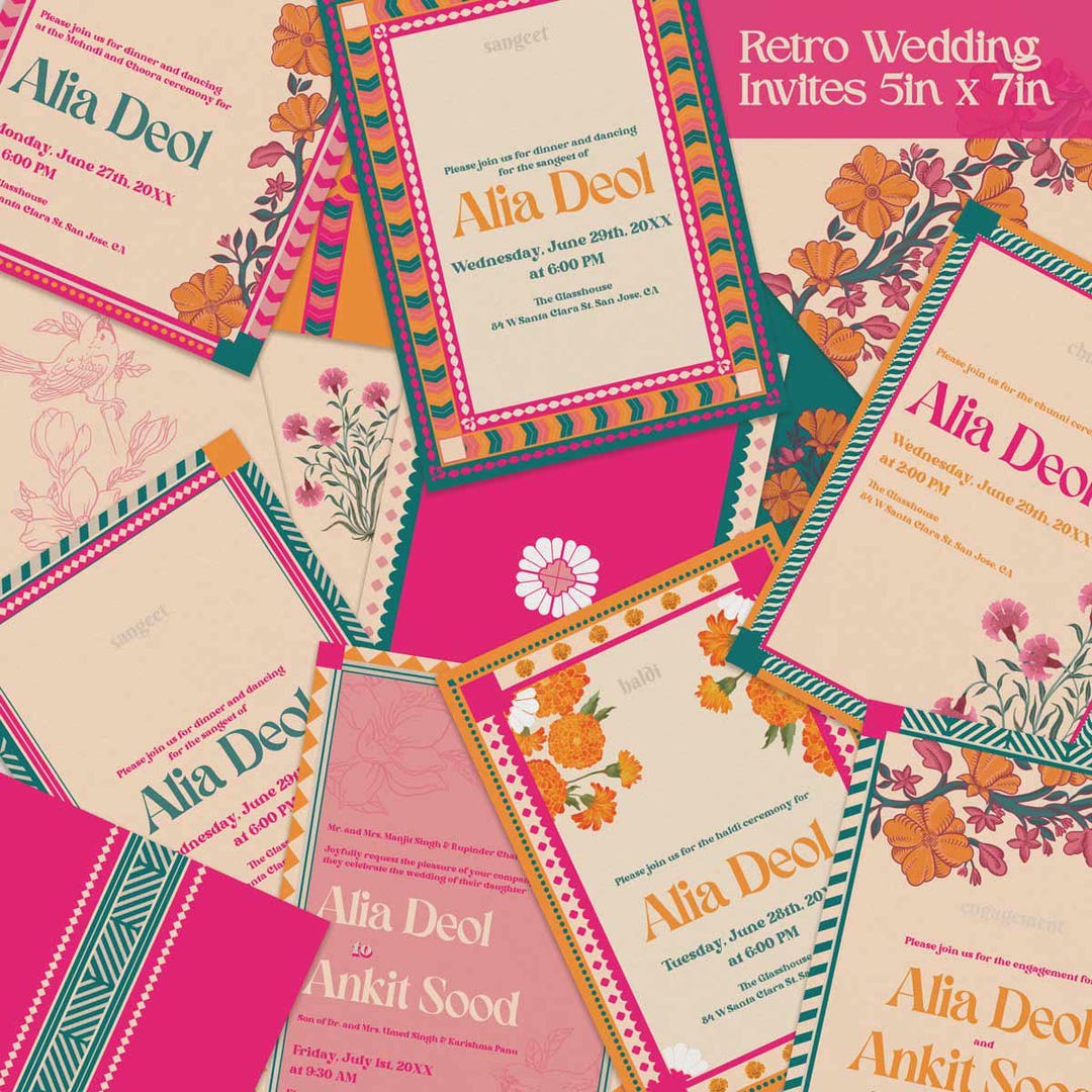 Retro Wedding Invitation Set, Indian Wedding Invites Multiple Insert ...