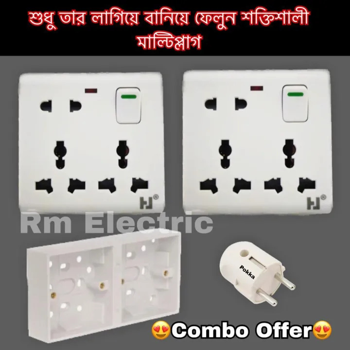 8 Pin Multi Socket 2 Pcs, 2 Gang Box & Pokka Two Pin Combo Pack , Multi ...