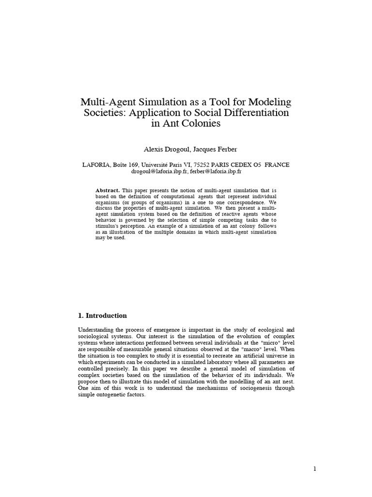Figure 1 from A multi-agent simulation for social agents | Semantic Scholar