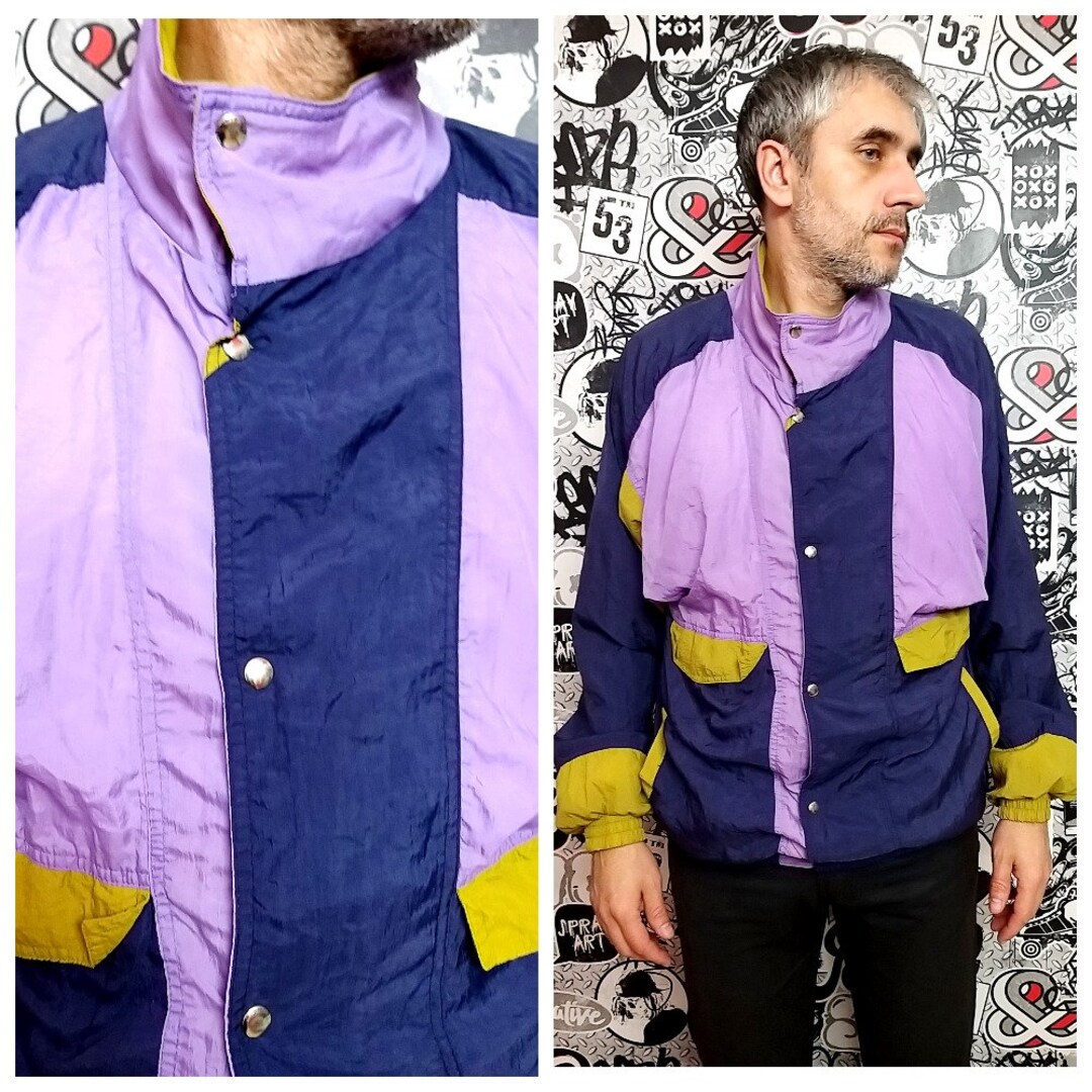 90s Vintage Shell Jacket Black Multi Colour Block Purple | Retro 80s ...