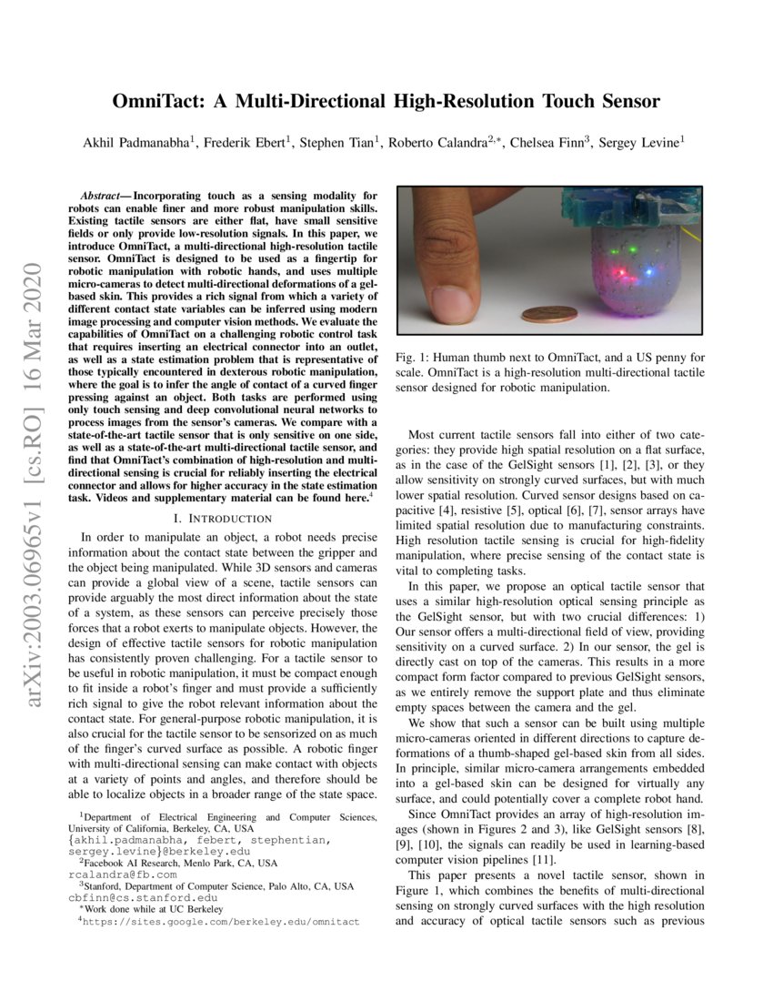 OmniTact: A Multi-Directional High Resolution Touch Sensor | DeepAI