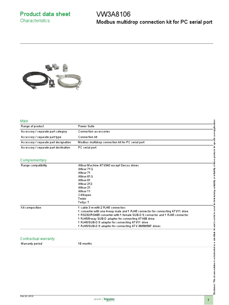 Product Data Sheet: Modbus Multidrop Connection Kit For PC Serial Port ...
