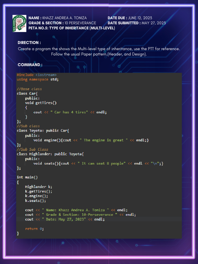 Multi level inheritance in C++ with Syntax and Examples | T4Tutorials.com