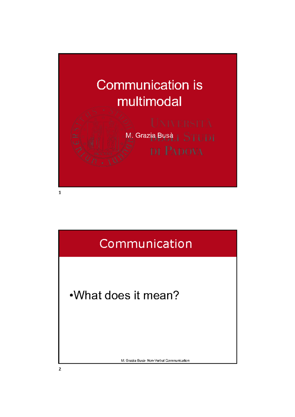 Lesson 1: Understanding Multimodal Communication (M. Grazia Busà) - Studocu