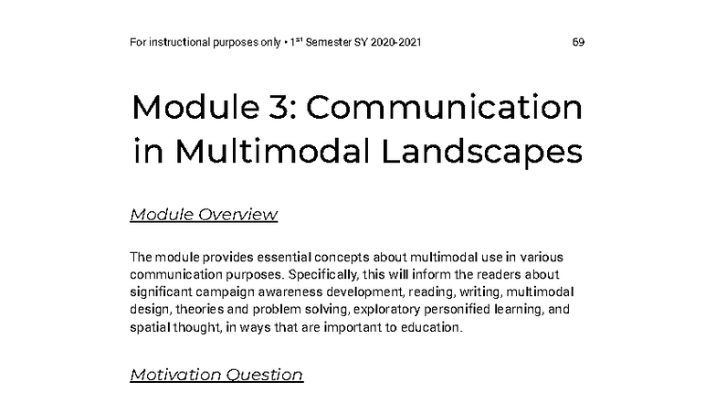 Comm 11: Purposive Communication Module 3 - Multimodal Communication ...