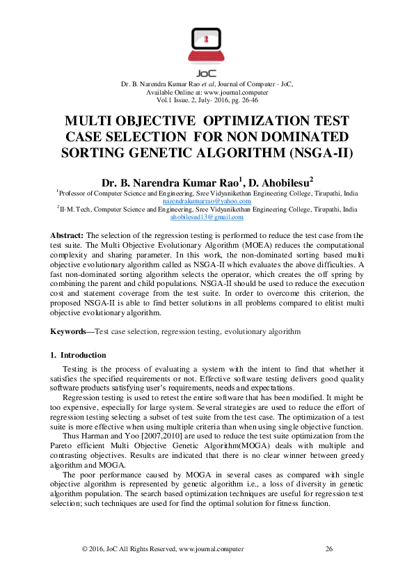 (PDF) Multi Objective Optimization Test Case Selection for Non ...