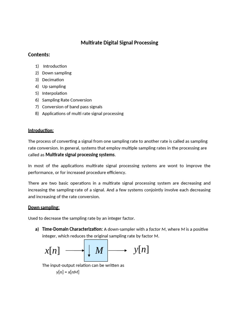 Multirate Signal Processing Overview: Concepts and Applications - Studocu