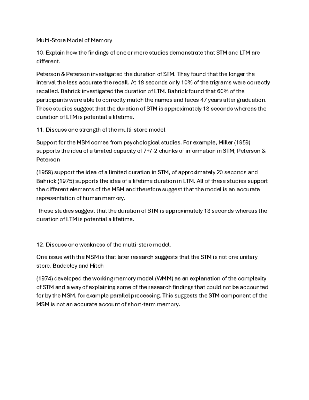 Memory - psychology notes - Describe and evaluate the multi-store model ...