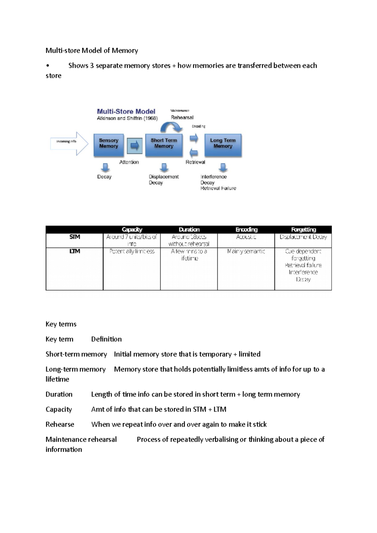 Memory notes - Spec: The multi-store model: sensory register, STM, LTM ...