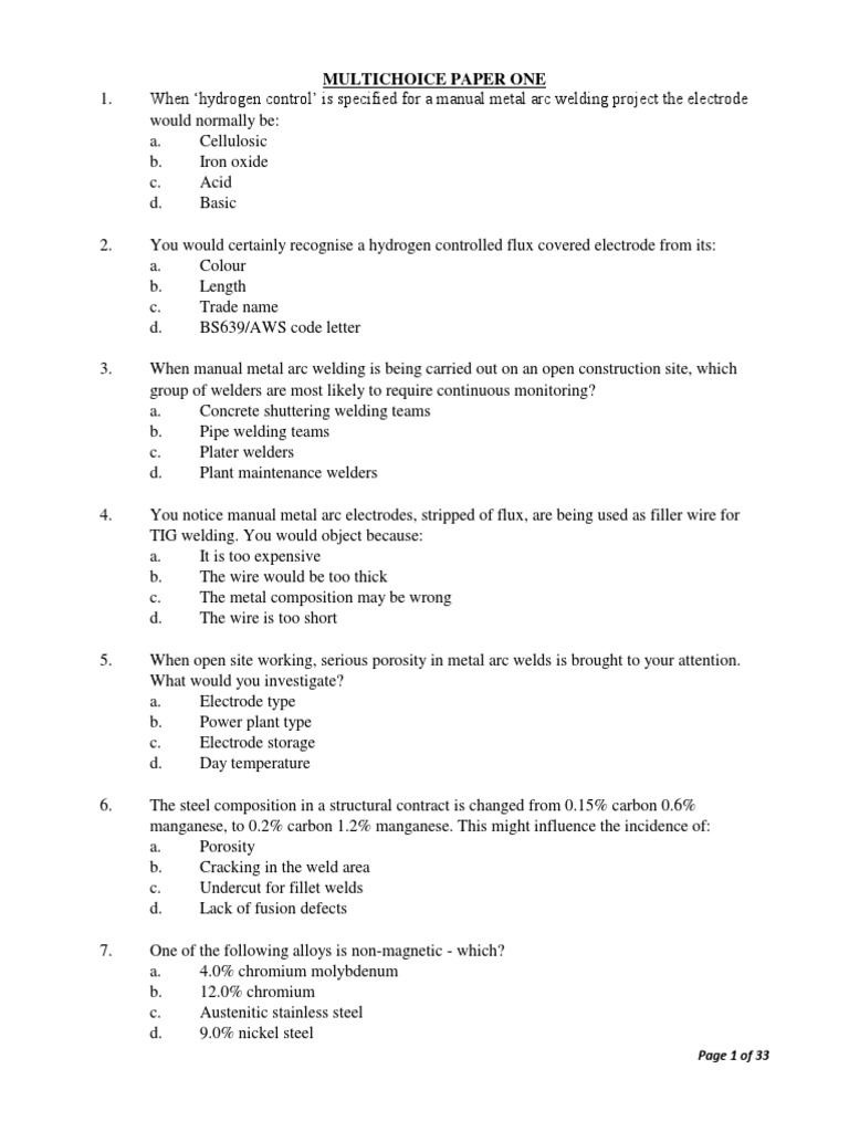 Multichoice Paper One: Page 1 of 33 | PDF | Welding | Construction