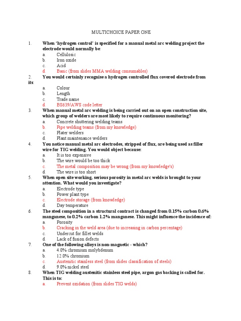 Multichoice Paper One | PDF | Construction | Welding