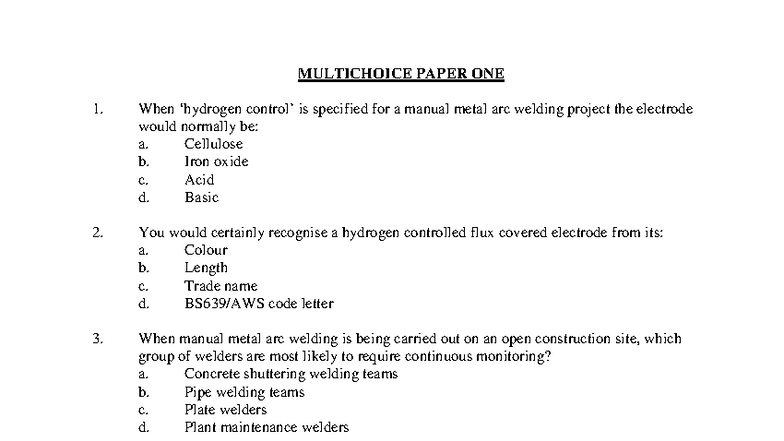 MULTICHOICE PAPER ONE 1-6: Cswip 3.1 Q&A - Studocu
