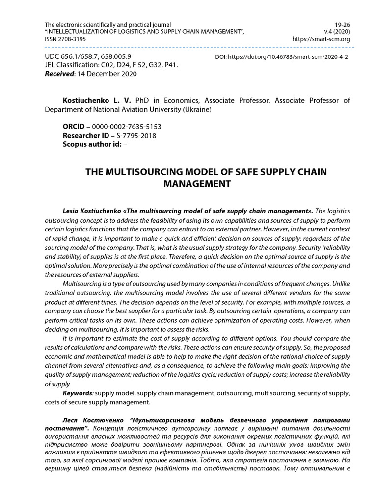 (PDF) The multisourcing model of safe supply chain management