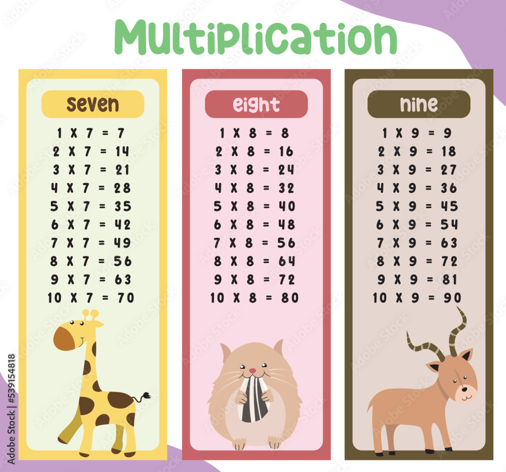 Vector multiplication table. Printable bookmarks or stickers with ...