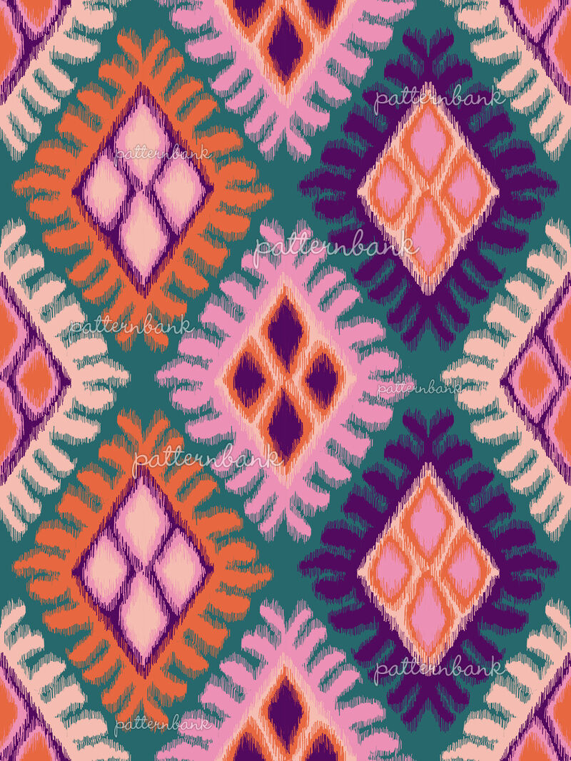 Vibrant multicolor ikat pattern with bold diamond motifs in purple ...